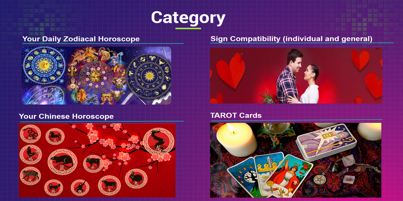 Users can get astrological information about their personal life, health, etc. In addition to the different signs about horoscopes, such as: